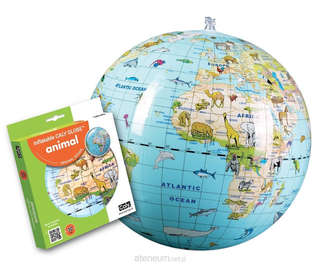 "Dzieci poznają różne kontynenty na kuli ziemskiej i zwierzęta, które tam żyją na co dzień w ich naturalnym środowisku. Zabawa polega na wyszukiwaniu zwierząt z ulotki na globusie. Piłka globus jest do nadmuchania, opakowanie nie zawiera pompki. "