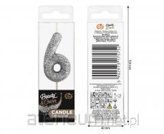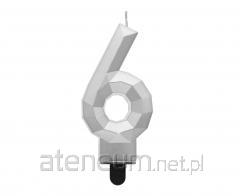 Świeczka cyferka 6 - Diament metalik srebrny 7,6cm