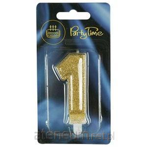 Świeczka cyferka brokatowa na podstawce. Wysokość świeczki 7,5 cm.