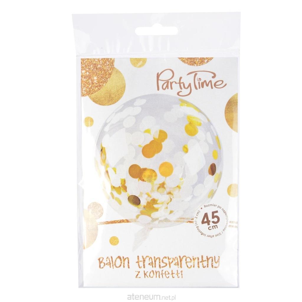 Balon kula, przezroczysty. Wewnątrz balonu znajduje się konfetti - złote metaliczne oraz bibułkowe białe. Bardzo elegancka dekoracja. Duży, transparentny balon przypomina bańkę mydlaną.