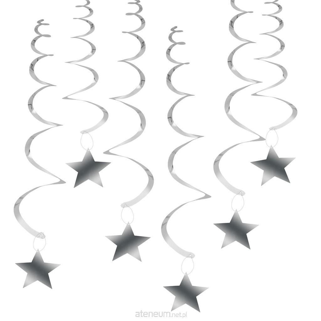 Wirujące serpentyny z linii Celebrate! z gwiazdkami. Stylowa i oryginalna dekoracja na każdą imprezę. Opakowanie zawiera 6 sztuk. Długość: 80 cm. Kolor: srebrny.