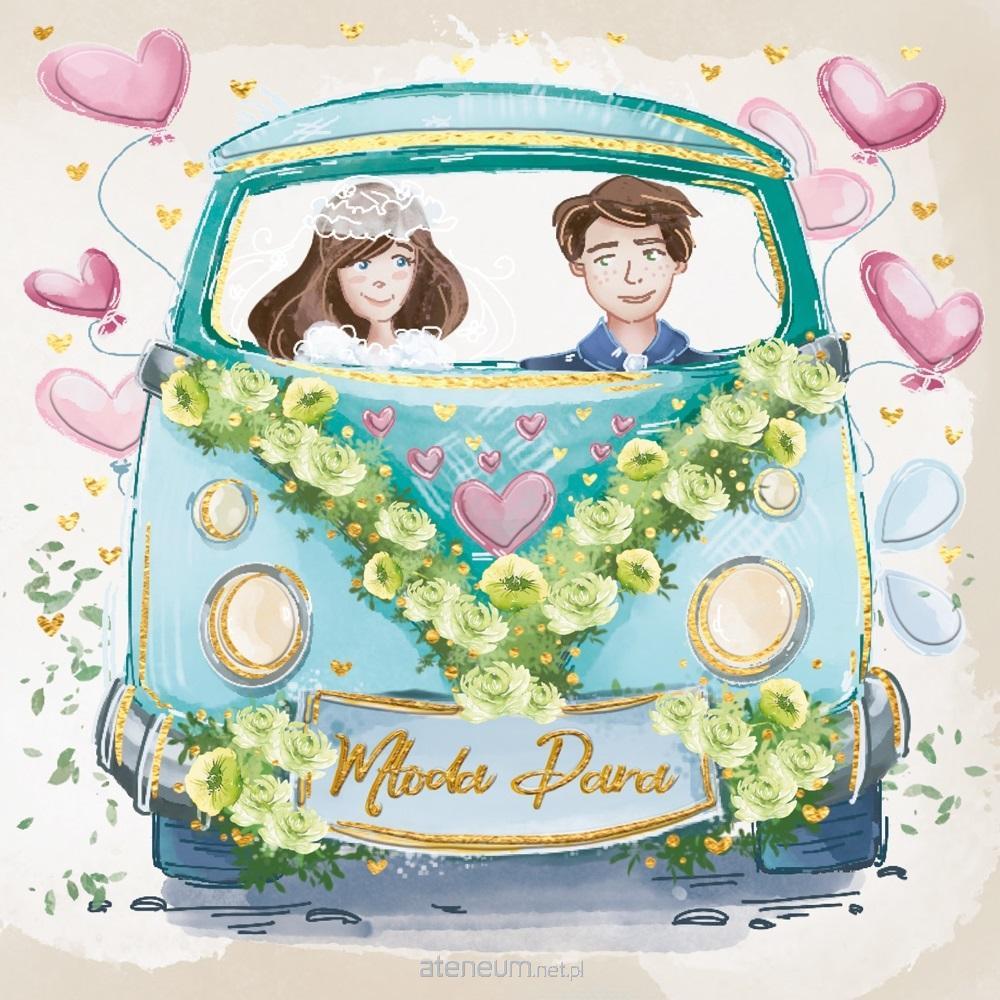 Karnet drewniany C6 + koperta Ślub Para Młoda serc