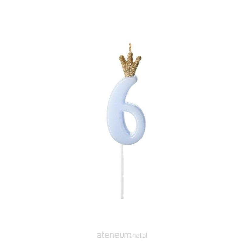 Świeczka urodzinowa Cyferka 6 w kolorze jasnoniebieskim, rozmiar ok. 9.5 cm.