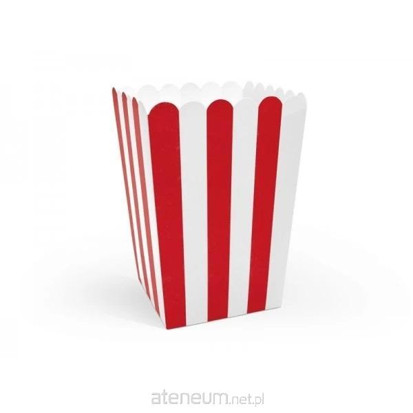 "Pudełka na popcorn w kolorze czerwonym w białe paski, wymiary po złożeniu ok. 7 x 7 x 12,5 cm. (1 op. / 6 szt.)"