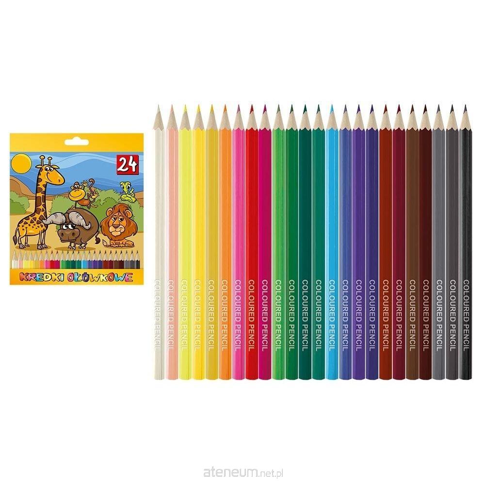 Sześciokątne, w drewnianej, lakierowanej oprawie. Ergonomiczny kształt kredek doskonale pasuje do dziecięcych dłoni. W kartonowym, kolorowym pudełku z motywami zwierzątek. W zestawie 24 kolory kredek. Długość kredek: 17.5 cm. Średnica kredek: 7 mm
