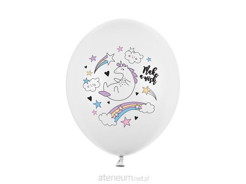 Balony Strong Jednorożec w kolorze Pastel Pure White z dwustronnym nadrukiem, średnica 30 cm(1 op. / 6 szt.)