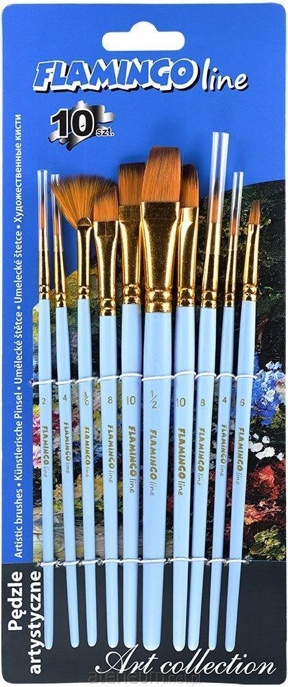 Zestaw 10 pędzli artystycznych z włosiem syntetycznym. Idealnie nadają się do bardzo precyzyjnego malowania. Gwarantują niezwykłą precyzję przydatną przy kreowaniu wszelkiego rodzaju niewielkich detali i wykończeń. Idealne do zastosowań szkolnych, domowych oraz dla artystów na każdym poziomie zaawansowania. Doskonale nadają się do farb olejnych, akrylowych, akwarelowych, gwaszy oraz farb do tkanin. Sprawdzą się również doskonale w technice decoupage podczas wykonywania drobnych detali. Wytrzymałe drewniane uchwyty z oznaczeniem grubości pędzla. Różne grubości włosia oraz rodzaje końcówek: