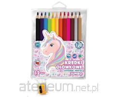 Kredki ołówkowe Jednorożec 12 kolorów + temperówka