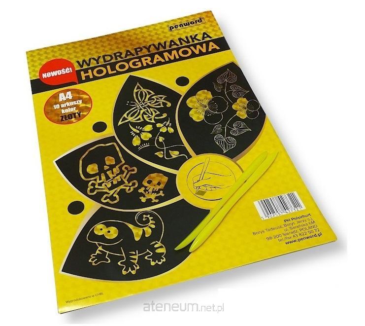 W zestawie 10 arkuszy pokrytych czarną farbą oraz dodatkowo 2 rysiki z dwoma różnymi końcówkami, służące do wydrapywania obrazków.