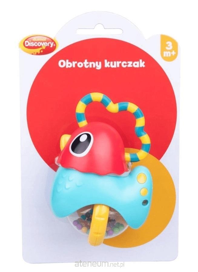 Obrotny kurczak wprawi w wyśmienity nastrój każdego fana grzechotania. Obrotowa główka zabawnie terkocze, a koraliki znajdujące się w brzuchu kurczaka wesoło grzechoczą przy potrząsaniu zabawką. Zróżnicowane faktury stymulują zmysł dotyku i wzroku malucha, rozwijając przy tym jego zdolności poznawcze.