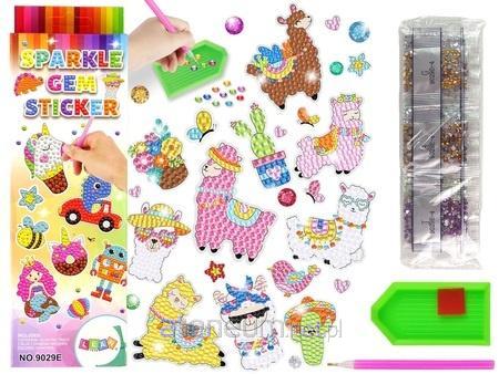 Zestaw Naklejek Haft Diamentowy Lamy Zwierzęta Mozaika Kreatywny zestaw diamentowy to znakomita propozycja dla wszystkich miłośników prac plastycznych. Zarówno dzieci, jak i dorosłych. Nasz zestaw zawiera wszystkie niezbędne elementy do stworzenia błyszczących naklejek, które ozdobią Twój zeszyt, książki lub mebel w pokoju. To idealny produkt dla osób, które lubią tworzyć oryginalne rzeczy. Cała zabawa wymaga ćwiczenia cierpliwości, precyzji i umiejętności manualnych. W zestawie znajdziemy różne kolory kryształków, dzięki którym możemy udekorować naklejki. Powierzchnia do przyklejania diamentów pokryta jest warstwą kleju, numerki oznaczone na powierzchni wskażą jakiego koloru użyć. Układaj jeden po drugim i stwórz małe dzieło sztuki! Naklejki przedstawiają lamy w różnym ubraniu i ustawieniu. W zestawie znajdziemy: - naklejki lamy - opakowania kolorowych kryształków x19 ( diamenciki w różnych rozmiarach) - tackę na kryształki - sztyft - klej Wymiary naklejek: około 5 cm x 4 cm Wymiary opakowania: 26 cm x 8 cm x 3 cm Zestaw przeznaczony dla dzieci od 5 roku życia. Idealny pomysł na prezent !