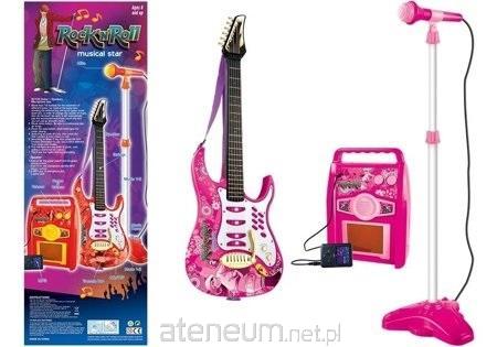 GITARA Z MIKROFONEM + PIECYK/WZMACNIACZ Muzyczna gitara dla młodych, rockowych dzieci. Piecyk z mikrofonem wzmacniaczem jest propozycją dla maluchów uwielbiających występy przed publicznością. Gitara elektryczna ma 6 metalowych strun, czułych na dotyk. Zestaw zawiera: - Gitarę elektryczną - Wzmacniacz - Mikrofon ze statywem Funkcje Gitary: - regulacja głośności - wybór tonów - dźwignia - 6 melodii demo - regulacja tempa - stop - wybór dema - funkcja ON/OFF w mikrofonie - pasek do gitary Wzmacniacz - ma 3 wejścia: na gitarę, na mikrofon, na odtwarzacz mp3 - posiada regulację głośności tak jak gitara - podłączając własne mp3 możemy swobodnie śpiewać razem z wokalistą z ulubionej piosenki Mikrofon Podłączony mikrofon pogłaśnia głos aby było słychać piosenkarza podczas występów. Twoje dziecko lubi muzykę i chciałoby zostać prawdziwym Rockmanem? Ta gitara jest dla Ciebie! Wymiary: Gitara: 72 cm x 25 cm x 4 cm Statyw: od 65 cm do 109 cm Zestaw zapakowany w kolorowym pudełku.