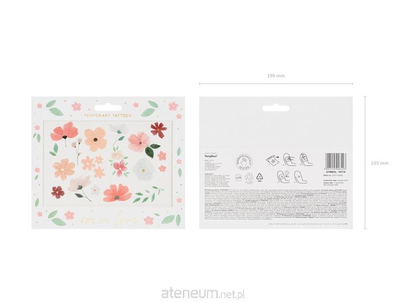 Tatuaże zmywalne Kwiaty, mix wzorów i kolorów, zestaw zawiera 18 szt. (po 1 z każdego wzoru)(1 op. / 18 szt.)