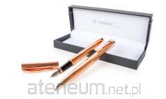 Model zestawu piśmiennego MASTER w atrakcyjnej kolorystyce ze złotymi wykończeniami. Kolekcja obejmuje pióro wieczne ze stalówką irydową oraz długopis. Pióro wieczne ze stalówką irydową zasilane standardowymi nabojami atramentowymi. Długopis posiada pstrykany system wysuwania wkładu wielkopojemnościowego typu Zenith. Zestaw zapakowany jest w etui prezentowe wraz z piórnikiem z eco skóry - idealne na prezent.