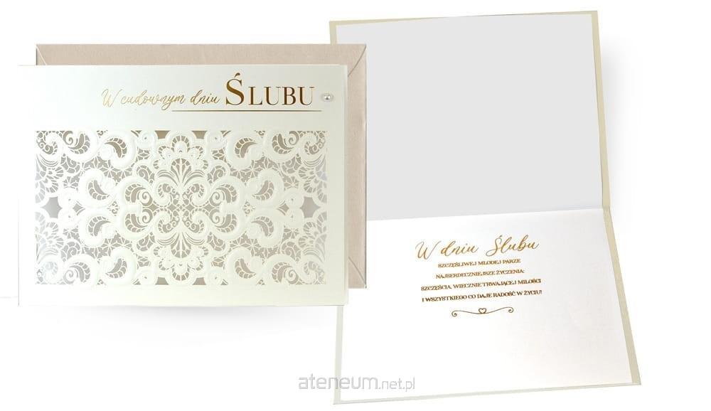 Karnet Dream Cards Plus "Ślub" w powiększonym tzw. Angielskim formacie 140x190 mm. Kartka z ozdobnej serii Dream Cards Plus robi wrażenie dzięki atrakcyjnej kolorystyce i ciekawym zdobieniom. To idealny wybór łączący przyjazną cenę z jakością. Cechy szczególne: wielkość: 14,5 x 19,5 cm po złożeniu kopertą, wnętrze: wyjątkowe życzenia w środku, w komplecie: dopasowana kolorystycznie koperta. zdobienia: różnorodne, bogate (w zależności od wzoru: przyklejane dekoracje, elementy biżuteryjne, odstawniki, brokat, metaliczne folie, tłoczenia itp.), okazja: ślub