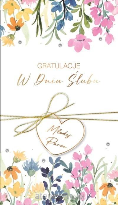 Karnet okolicznościowy z kopertą i życzeniami w środku.