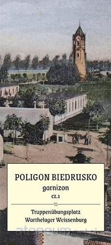 Plan przedstawia poligon w podpoznańskim Biedrusku w latach 1901-1918 ze szczegółową legendą (na stronie pierwszej) oraz plan obozu ćwiczebnego w latach 1918-1939 i 1939-1945 wraz ze skrótowo opisanym zarysem historii garnizonu Biedrusko (na stronie drugiej). Całość wzbogacają również plany sytuacyjne kasyna oficerskiego, murowanego baraku dla żołnierzy, także szkic zewnętrznego widoku baraku, a wreszcie historyczne zdjęcia z początku XX wieku.