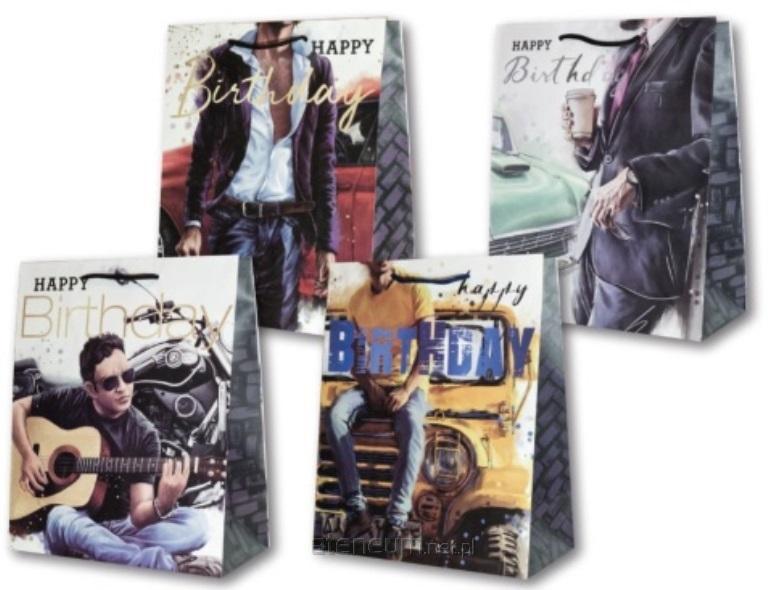 Torebka ozdobna laminowana PL-6 średnia 71 męskie, mix wzorów, wzór wysyłany losowo.