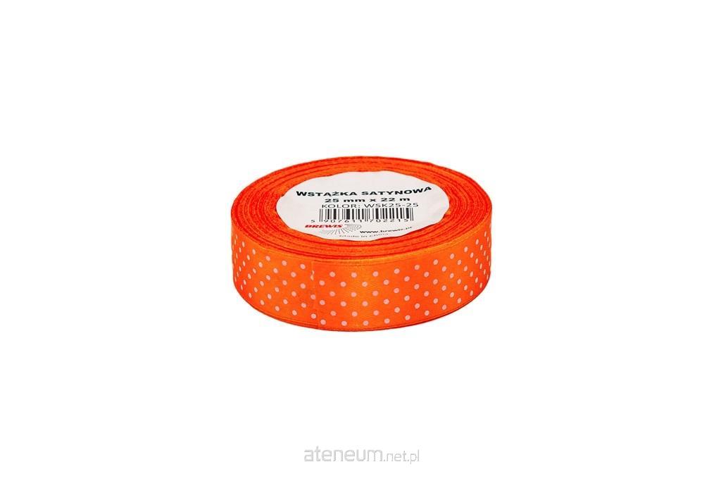 Wstążka satynowa w kropki rozmiar: 25 mm x 22 m kolor: pomarańczowy