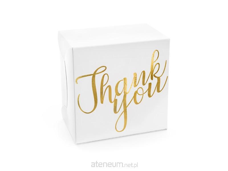 Ozdobne pudełka na ciasto, wykonane z białego papieru, ze złotym metalizowanym napisem Thank you. Wymiary po złożeniu ok. 14 x 8,5 x 14 cm.(1 op. / 10 szt.)