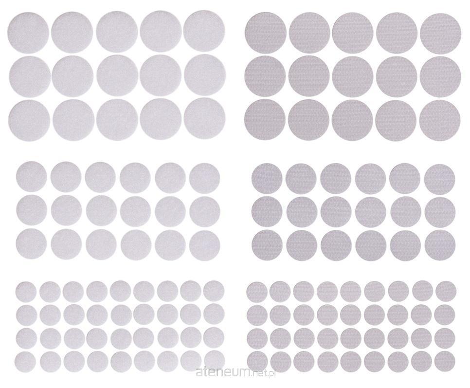 W opakowaniu znajdziesz 69 sztuk białych, okrągłych rzepów.