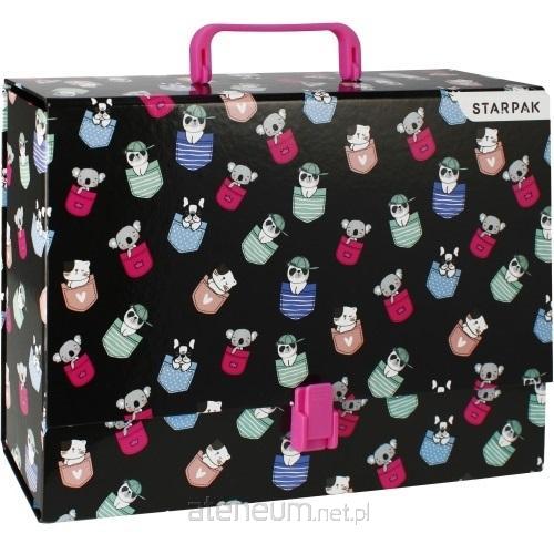 Zalety produktu: Teczka z rączką z kolekcji STARPAK z serii Minisy. Sztywna teczka wykonana z grubego, lakierowanego kartonu. Zamykana na plastikowy klips. Teczkę wyposażono w solidną rączkę. Teczka o szerokości grzbietu 9,5 cm. Idealnie sprawdzi się na zajęciach pozaszkolnych czy do przechowywania prac dziecka. Zapoznaj się również z innymi produktami z tej serii! Wymiary/waga: wymiary produktu (szer. x wys. x gł.)[cm]: 33x25x10, waga produktu [kg]: 0,52 kg. Produkt przeznaczony dla dzieci w wieku: 3+.