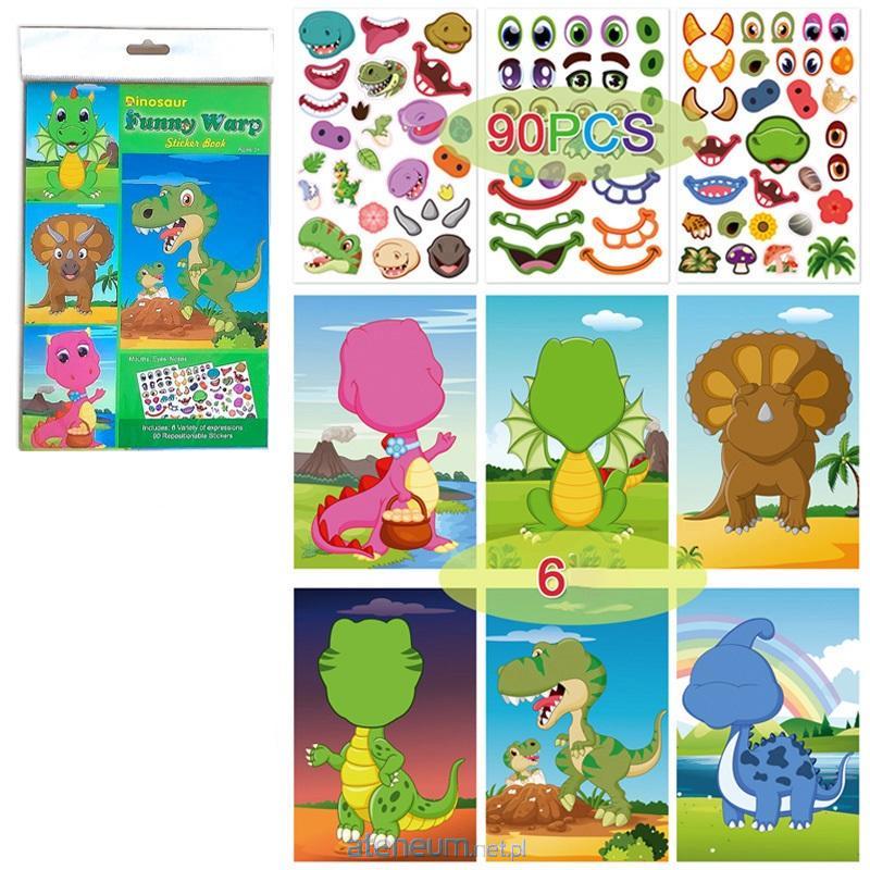 6 kart z postaciami dinozaurów, które trzeba wykończyć naklejakmi takimi jak buzia, oczy, uszy itp.. 90 naklejek w zestawie. Wymiary opakowania: 14,5 x 0,3 x 24 cm