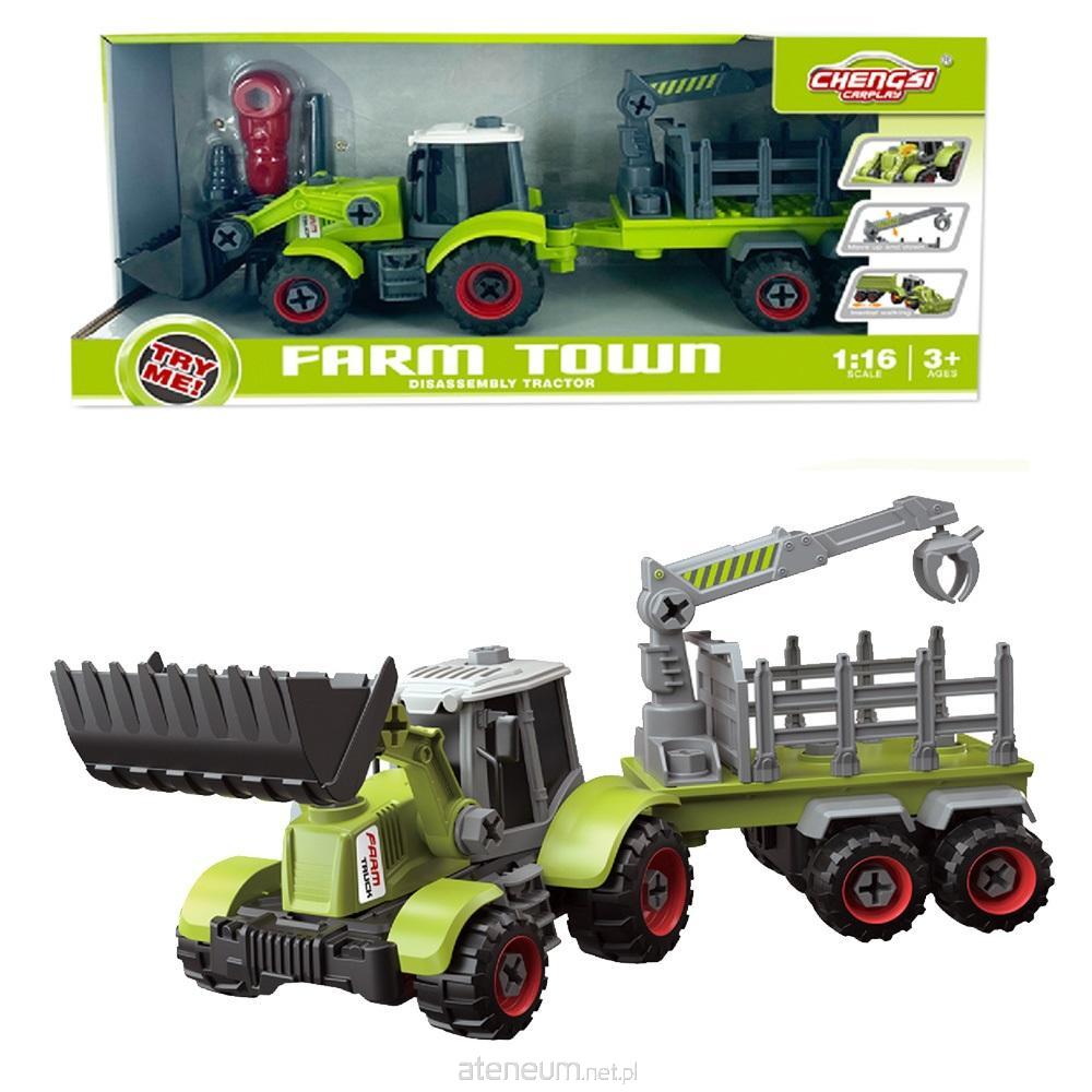 Traktor z łyżką i przyczepą do skręcania. W zestawie śrubokręt i dwie różne końcówki. Wymiary traktora: 39 x 13 x 14 cm
