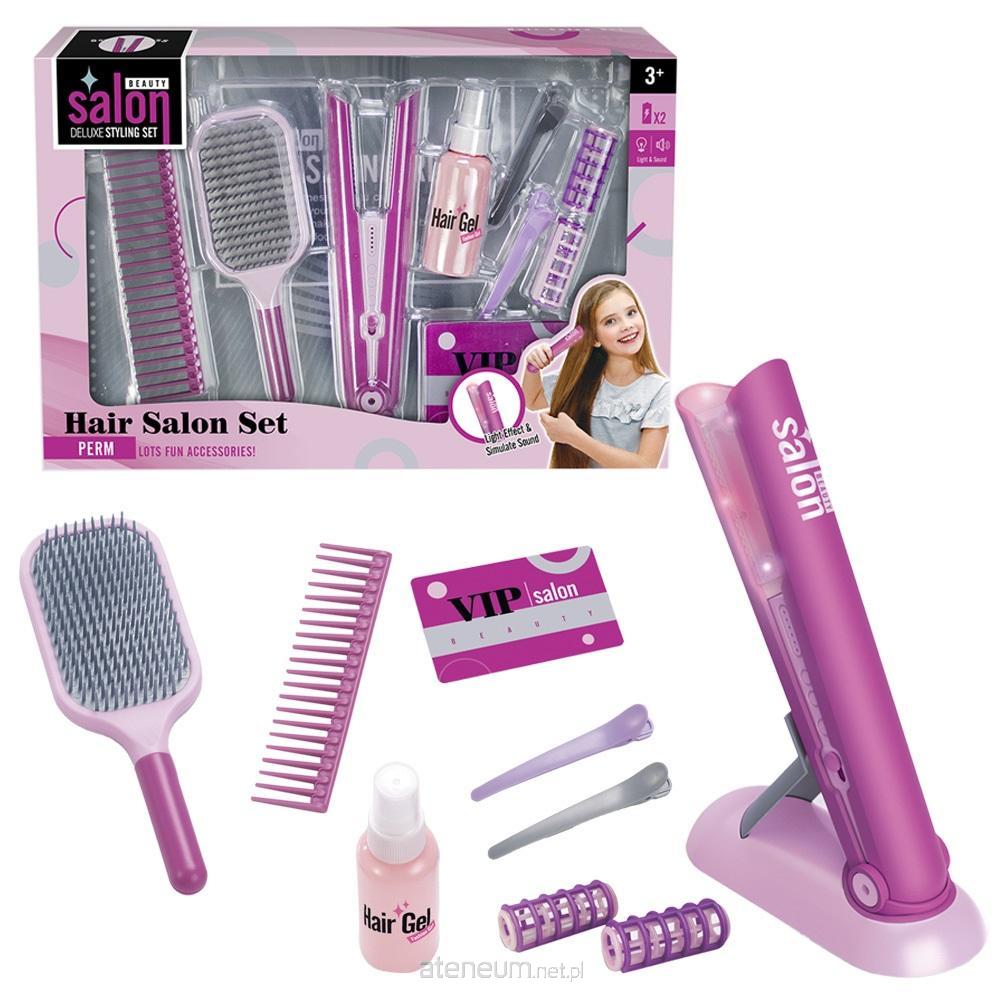 Zestaw składa się z prostownicy na baterie, szczotki, grzebienia, 2 wałków, 2 spinek, plastikowej buteleczki oraz karty VIP dla najlepszych klientek. Prostownica posiada blokadę, wymaga użycia baterii - 2xAAA (niedołączone).
