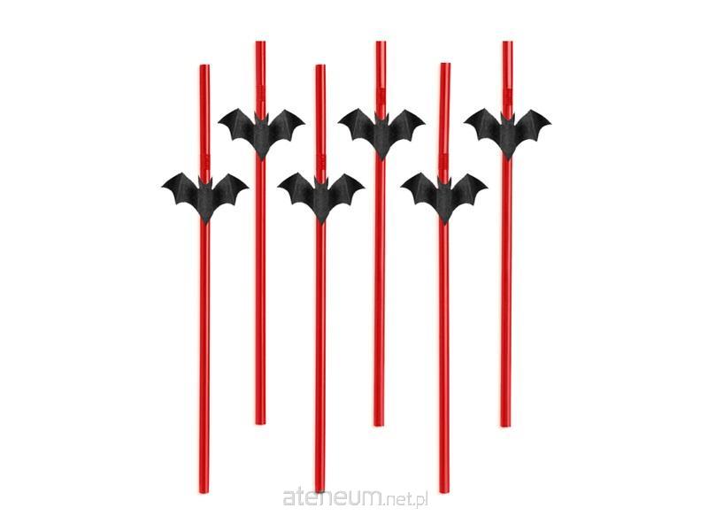 Słomki w kolorze czerwonym z czarnymi nietoperzami, długość 19,5 centymetra.(1 op. / 6 szt.)