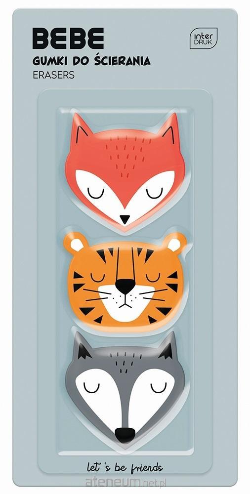 Zestaw 3 gumek w kształcie zwierzaków z serii BEBE Friends. Doskonale ściera nie pozostawiając śladów.