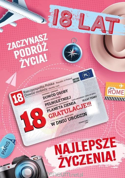 Karnet Certyfikat Urodzinowy 18 urodziny damskie
