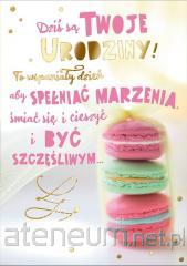 Karnet okolicznościowy z okazji urodzin. W zestawie koperta.