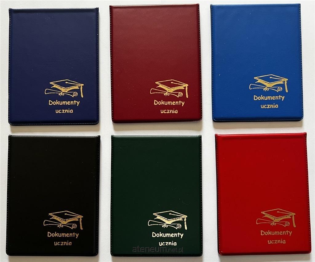 Okładki na dokumenty ucznia, wys. 229 mm, szer. 87 mm. Waga za opakowanie 1,6 g, jedna sztuka 0,32 g.