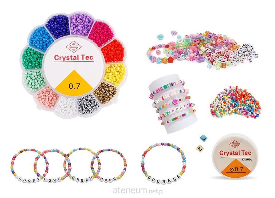 Koraliki zapakowane w plastikowy pojemnik w kształcie kwiatka, z 12 przegródkami, w każdej z nich inny kolor koralików.