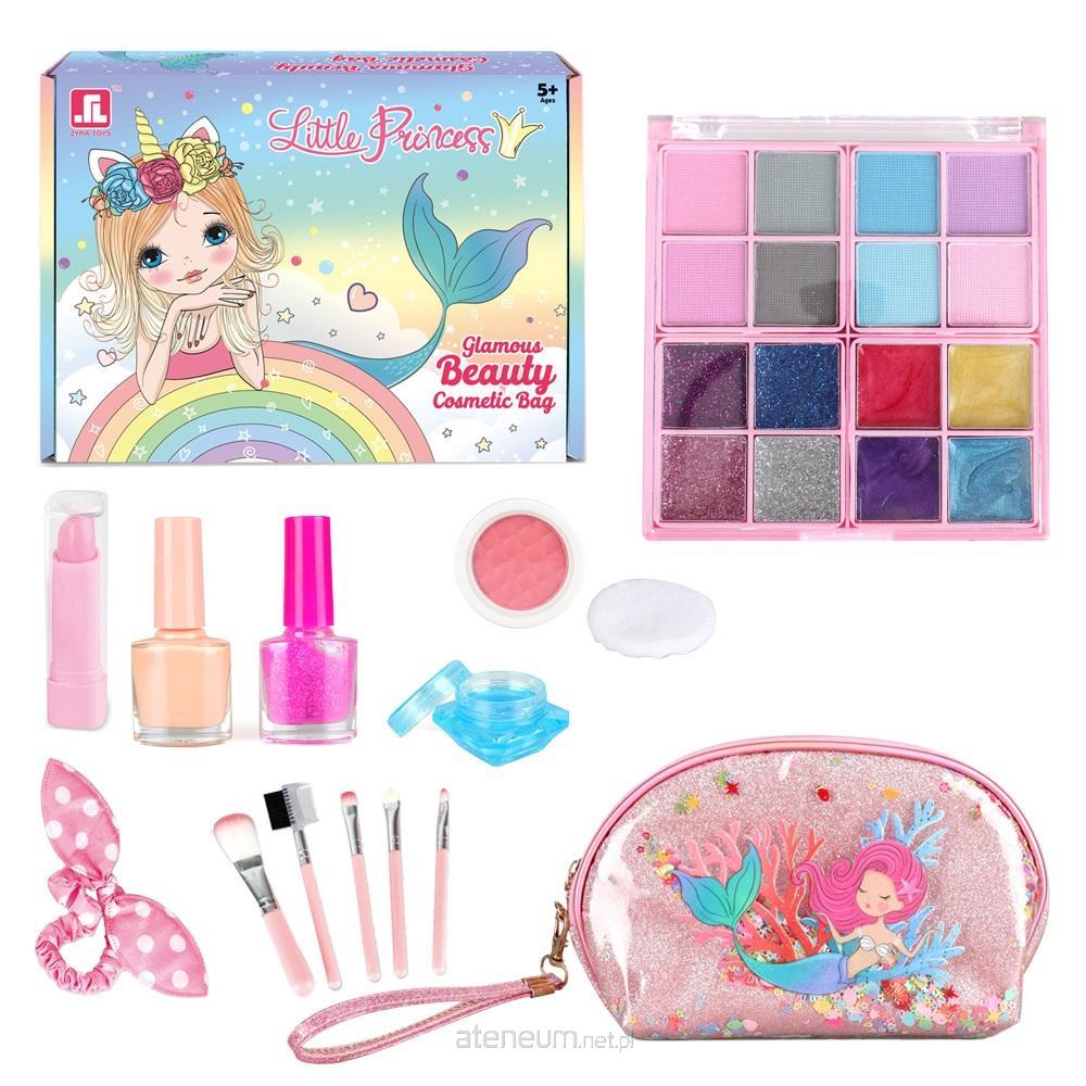 Zestaw składa się z dwóch lakierów do paznokci, szminki, błyszczyka, cieni do powiek, pudru i gąbki do niego, pięciu pędzelków do malowania oraz ślicznej kosmetyczki. Wymiary opakowania: 24 x 5 x 8 cm
