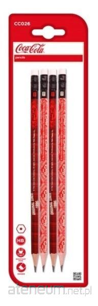 Ołówek grafitowy z sześciokątnym drewnianym korpusem z popowymi motywami Coca-Coli. Kopalnia HB. Z gumką na końcu. Blistry zawierające 4 sztuki z dwoma różnymi motywami Coca-Coli. Oficjalna licencja.