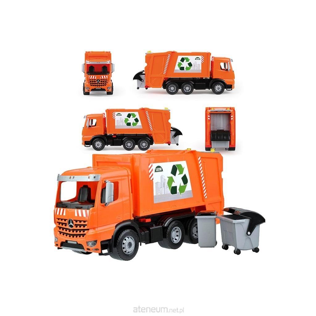 Atutem zabawki są duże koła z metalowymi osiami o grubości 6mm. Śmieciarka jest w pełni sprawna mechaniczne, możemy poruszać pojazdem po płaskiej powierzchni - to świetna zabawka do domu, a także na place zabaw, czy do przedszkoli. Zabawka w pełni oddaje prawdziwy wygląd śmieciarki - pojazd jest oznakowany, a kosze na śmieci, które zostały dołączone do pojazdu możemy zdjąć i bawić się nimi oddzielnie. Ponadto tylna klapa śmieciarki jest ruchoma.