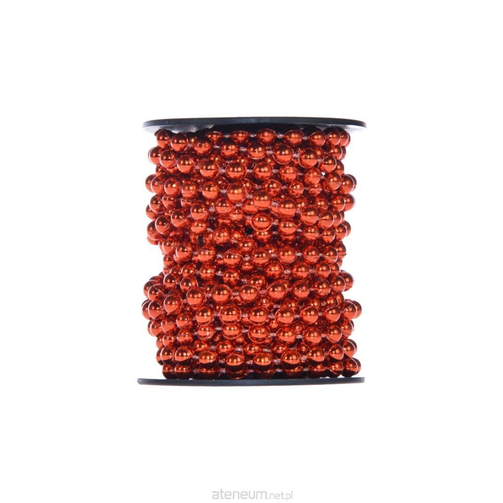 Łańcuch dekoracyjny z koralików w kolorze czerwonym o rozmiarze 6 mm na szpuli. Uniwersalna, błyszcząca dekoracja świąteczna na choinkę, do dekoracji domu, stroików. Idealnie pasuje do różnych aranżacji. Łańcuch o długości 6 m.