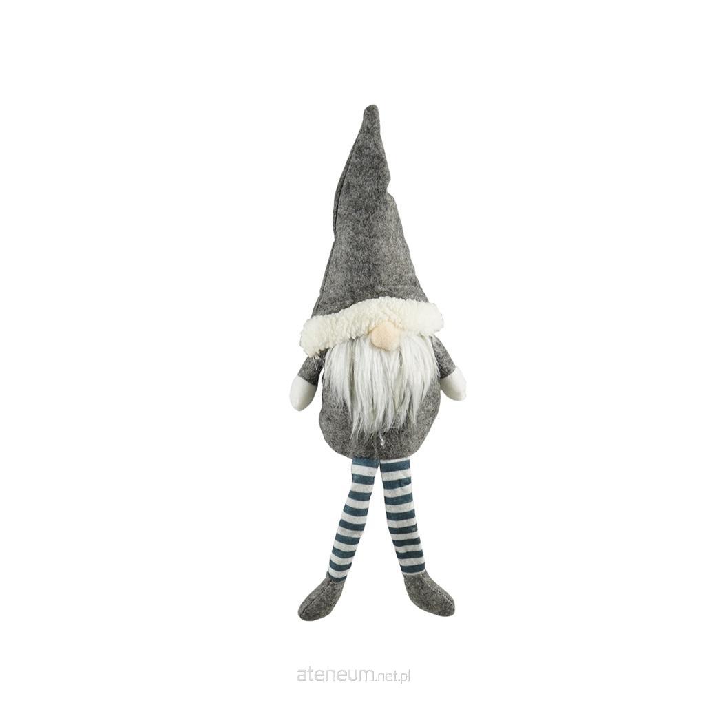 Filcowy skrzat dekoracyjny z długimi nogami. Urocza figurka w kolorze szarym. Skrzat ma miękką, białą brodę, getry w paski i wysoką czapkę zakrywającą oczy. Brzeg czapki został obszyty białym pluszem. Długie nogi skrzata zwisają jeśli umieścimy go na brzegu mebla. Uniwersalna dekoracja świąteczna pasująca do każdego wnętrza. Doskonały pomysł na prezent. Wysokość skrzata: 45 cm.
