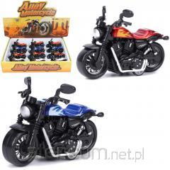 W zestawie: motocykl 14 cm., Funkcje: w czasie jazdy dźwięk pracy silnikia, hamowania, muzyka, świecący leflektor, napęd pull-back, baterie: , wym. Opk: 17 x 10,5 x 8 cm., 3+
