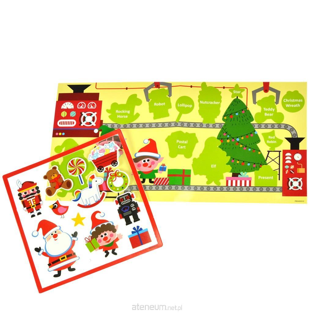 Świąteczny zestaw naklejek z planszą w dwóch wzorach. W skład zestawu wchodzą piankowe naklejki samoprzylepne oraz dwustronicowa plansza do wyklejania. Zestaw tworzy obrazek do samodzielnego wykończenia naklejkami we wskazanych miejscach, sugerując się kształtem lub podpisem w języku angielskim. Nauka poprzez zabawę! Produkt do kreatywnego spędzenia czasu z dziećmi. W opakowaniu znajduje się 1 blister z naklejkami i 1 plansza do wyklejania. Wymiary planszy to 20x40 cm.