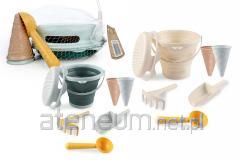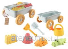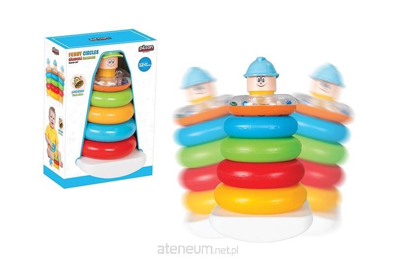 W zestawie: podstawa, 4 kolorowe pierścienie, pierścień przezroczysty z koralikami, główka, funkcje: kołysząca się podstawa, grzechotka, wym. Zabawki: 12 x 23 x 13 cm., 12m+