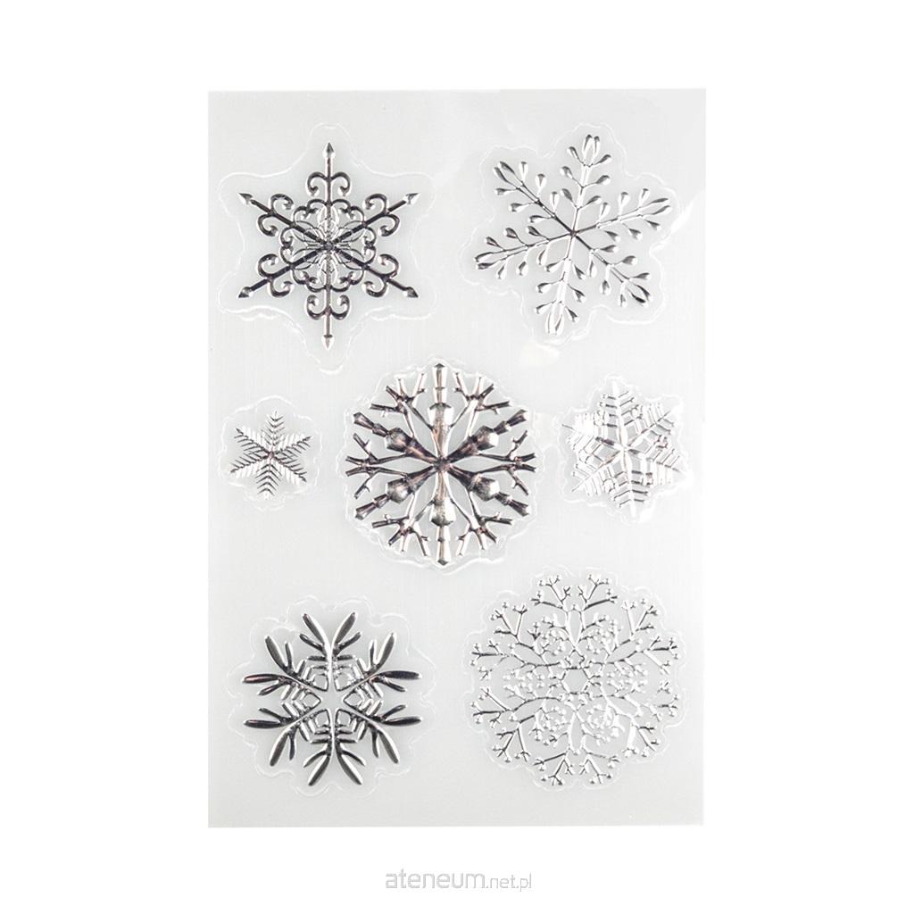 Arkusz naklejek z metalicznymi śnieżynkami. Idealne do ozdoby luster i okien, by wyczarować w domu zimowy klimat. Wymiar arkusza: 17x25 cm.