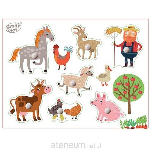 Każdy element tablicy jest w innym kształcie i kolorze puzzle prezentują różne rodzaje zwierząt z farmy oraz farmera. Tablica jest dla nich tłem i dopełnieniem obrazu.