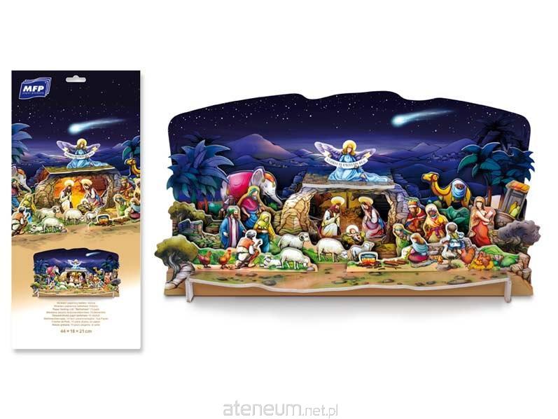 Szopka bożonarodzeniowa z grubej 3mm laminowanej tektury, łatwa do złożenia bez użycia kleju i nożyczek. Wymiar szopki po rozłożeniu 44 x 21 x 18cm. Wymiar: 440mm x 210mm x 180mm (szer. x wys. x gł.) Wyprodukowano w UE.
