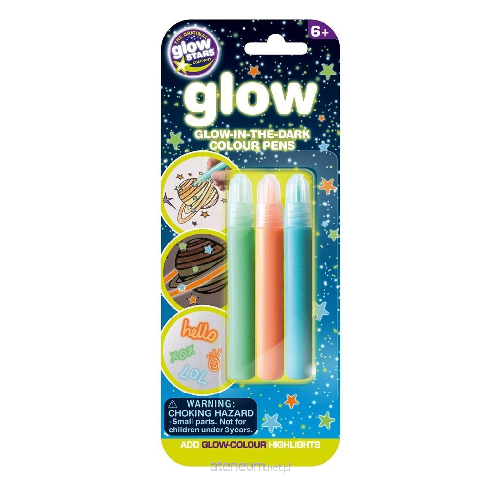 Pisaki z farbą fluoryzującą w ciemności - Glow in The Dark. Twórz własne świecące w ciemności elementy na rysunkach, naklejkach, plakatach i książkach. Delikatnie ściśnij pióro podczas pisania. Naładuj je w świetle, a następnie obserwuj, jak świecą przed snem. Po zastosowaniu zapewniają tłoczone, kolorowe wykończenie. Twoje kreacje należy pozostawić do wyschnięcia na noc. Zalecamy ochronę powierzchni i noszenie starej odzieży podczas korzystania z markerów, ponieważ kolor nie zmywa się z odzieży. Wszelkie wycieki należy natychmiast zetrzeć wilgotną szmatką. W zestawie 3 markery.