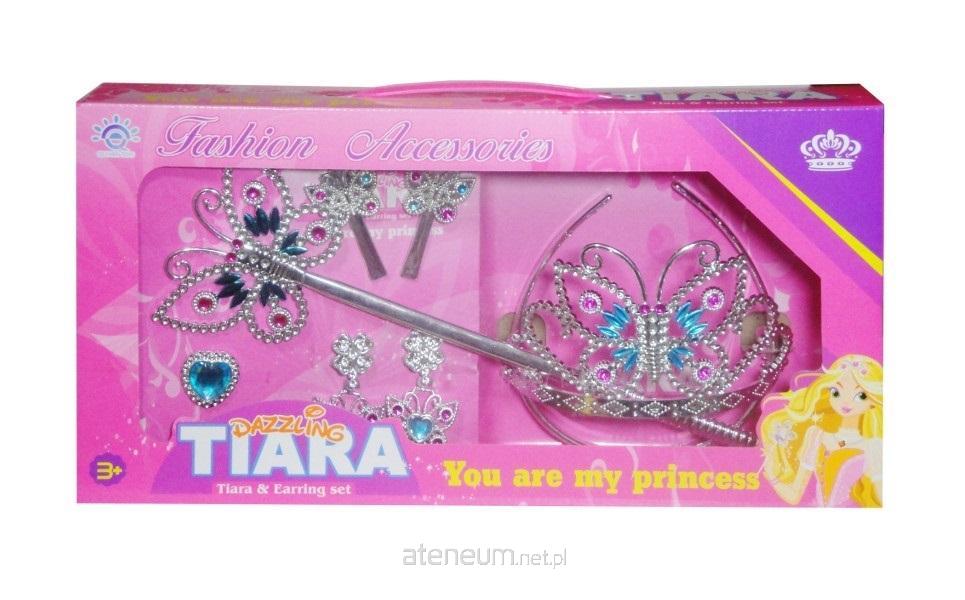 Zestaw dla małej księżniczki: tiara, różdżka, kolczyki, pierścionek i spinki. Zestaw spradzi się idealnie jako uzupełnienie stroju na balik przebierańców.#&Produkt zapakowany w kartonowe opakowanie z przezroczystym okienkiem. #&Podane wymiary są wymiarami opakowania.#&Zabawka dla dzieci od 3 lat.