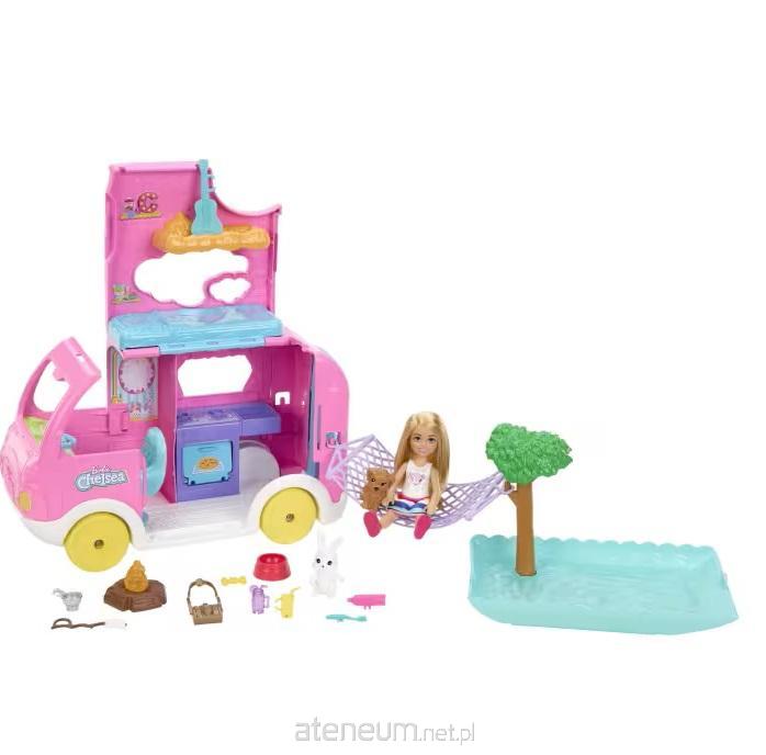 Barbie Chelsea Kamper pozwala małym podróżniczkom wyruszyć w drogę i przeżywać świetne przygody w towarzystwie uroczej Chelsea. Pojazd można przekształcić w obozowisko z kuchnią, sypialnią na dachu i basenem.