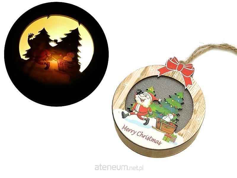 Zawieszka świąteczna drewniana ze światłem LED. Średnica 8,5cm